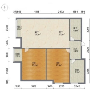 2室2厅1卫低层(共33层) 95.79㎡精装修 南北202...